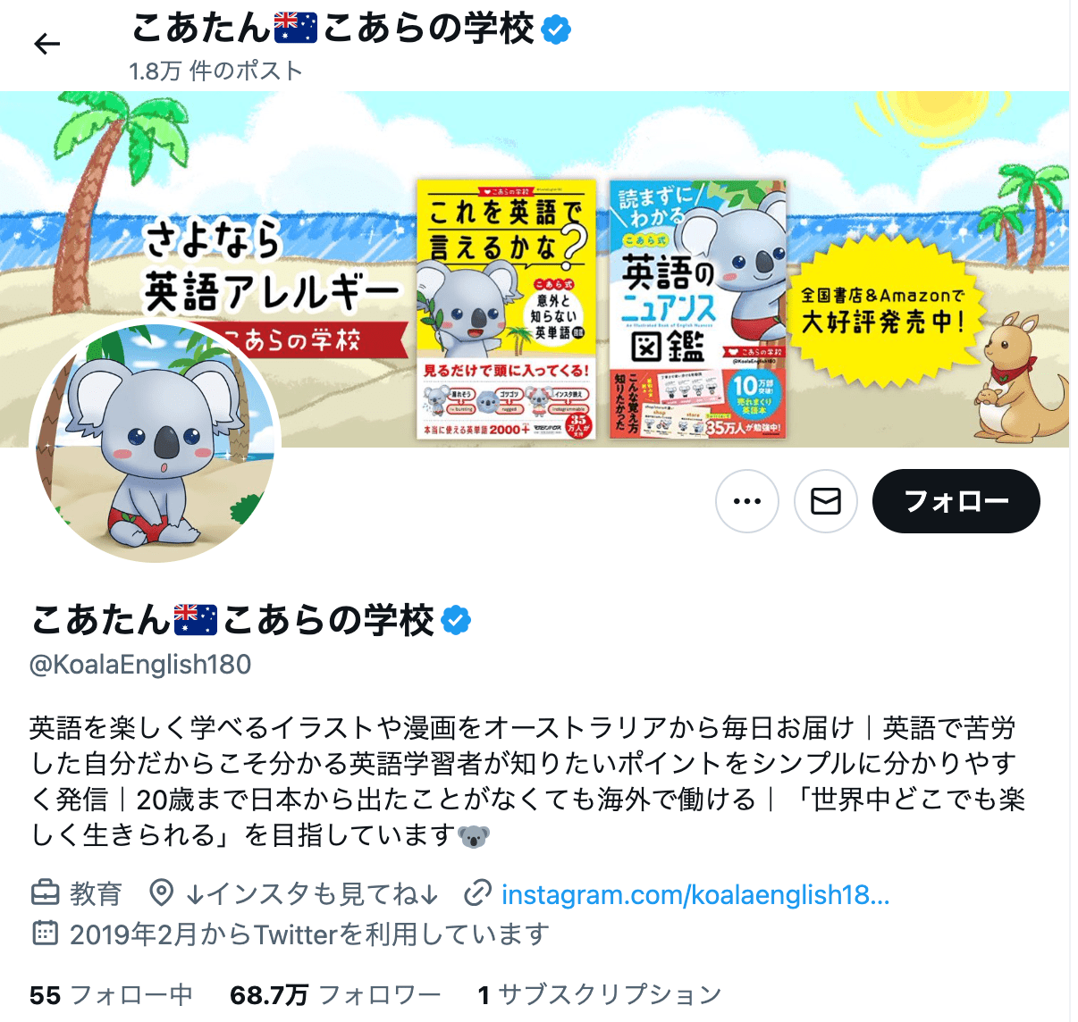 こあらの学校という、X(旧Twitter)にて、70万人近くのフォロワーを持つ、